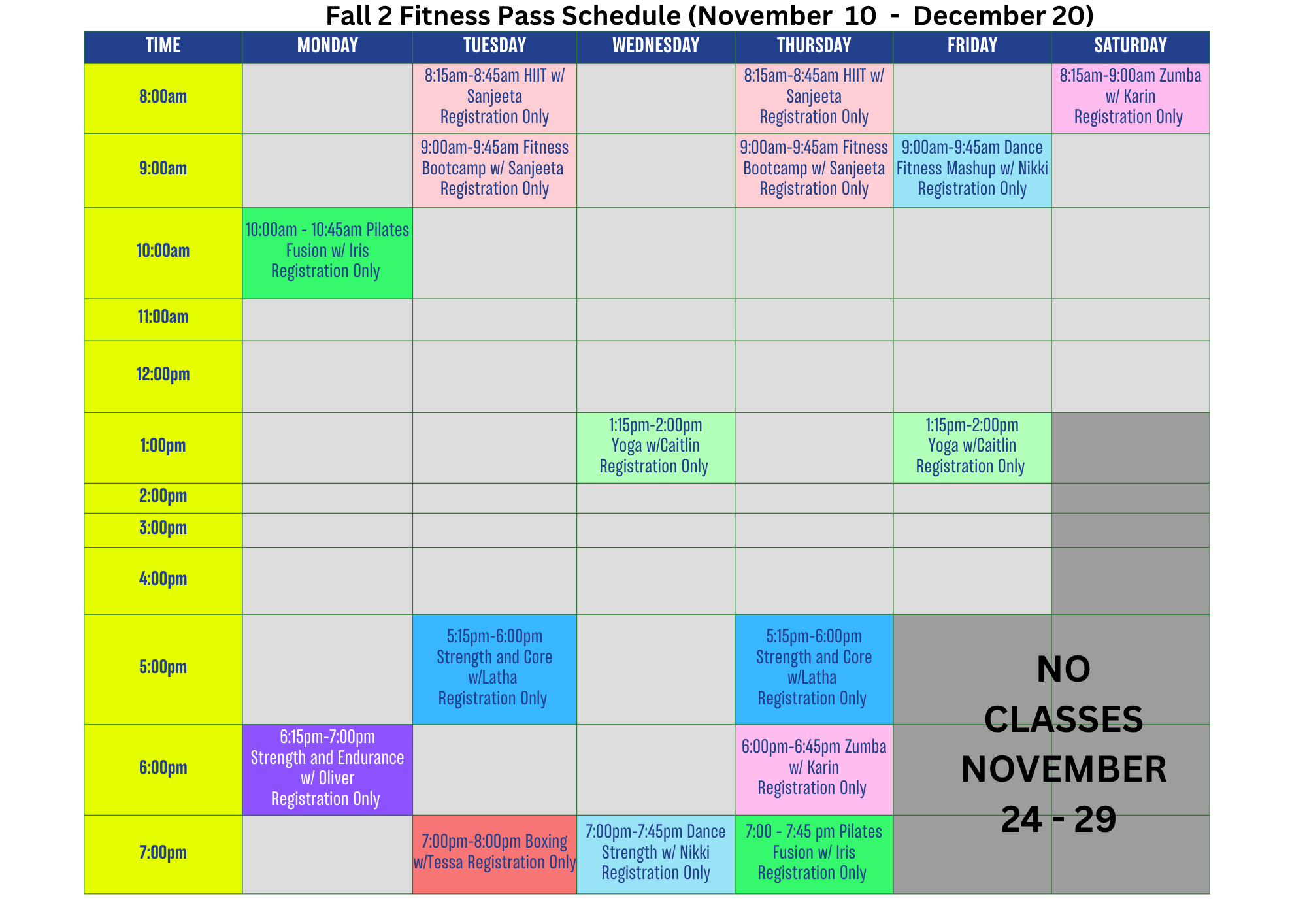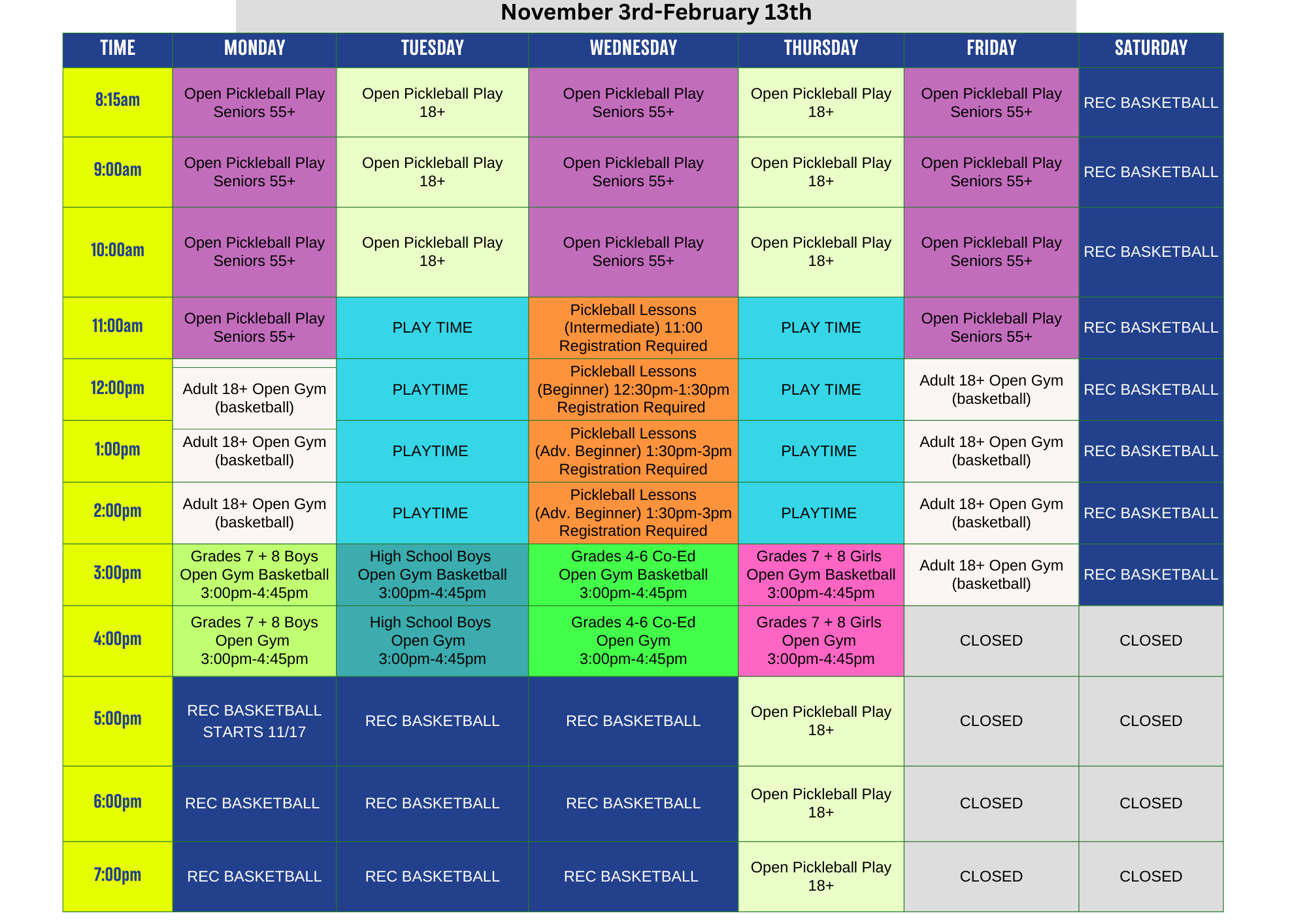 Gym Court Schedule (starting 11/3) Fitness Room Schedule